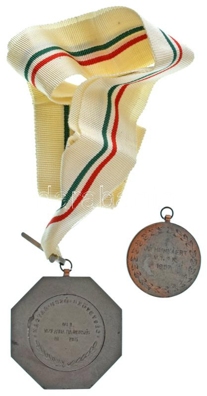 1957. "Jó munkáért - VTSK (Városi Tanács Sportkör) 1957" Zn vízilabda érdemérem szalag nélkül. Szign.: Szentesy Hiesz Géza (1896-1975) (40mm) + 1965. "Magyar Úszó Szövetség - OB II. Vízilabda Bajnokság - III. - 1965" nyolcszögletű Zn vízilabda díjérem szalaggal. Ebben a szezonban a másodosztály 3. helyén a VTSK (Városi Tanács Sportkör) csapata végzett. Szign.: Szentesy Hiesz Géza (1896-1975) (59mm) T:VF,XF