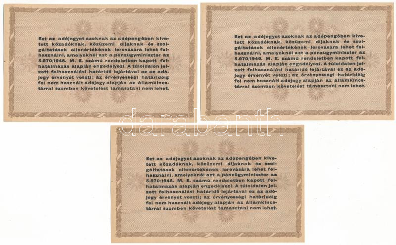 Beschreibung: 1946. 10.000AP (3x) sorszámkövetők, vízjeles papíron "D 39 88.351 - D 39 88.353" T:AU Adamo P49
