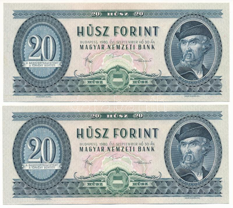 Beschreibung: 1980. 20Ft (2x) sorszámkövetők "C 369 041007 - C 369 041008" T:XF