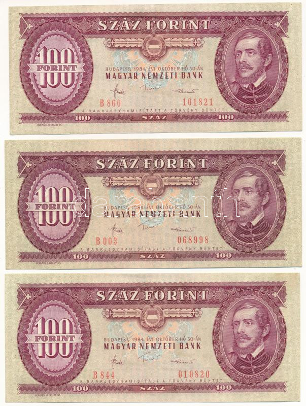 1984. 100Ft (3x) T:AU,XF,F szép papír