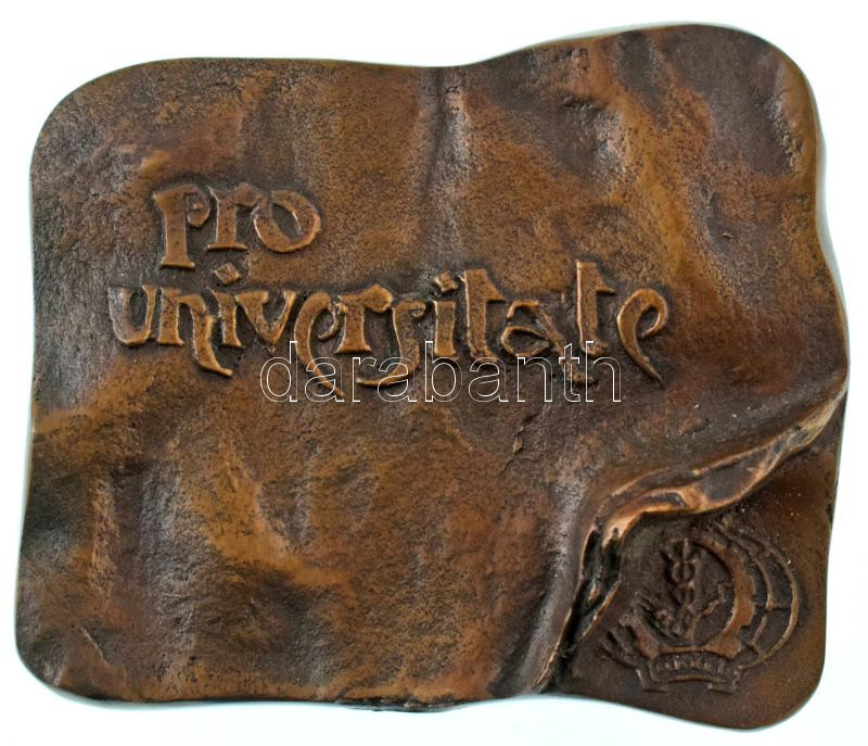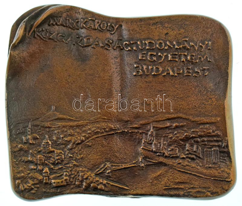 1970 k. "Pro Universitate / Marx Károly Közgazdaságtudományi Egyetem" nagyalakú bronz plakett, márványtalp nélkül (98x110mm) T:XF az alsó perem mentén felületesen eldolgozott anyagtöbblet