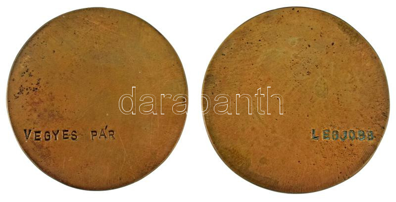 Várhelyi György (1942-) DN "Fészek Bridzs" egyoldalas bronz emlékérem, hátoldalán "LEGJOBB" bevéséssel (63,5mm) + 1984. "MCMLXXXIV" egyoldalas bronz emlékérem, hátoldalán "VEGYES PÁR" bevéséssel (61,5mm) T:AU