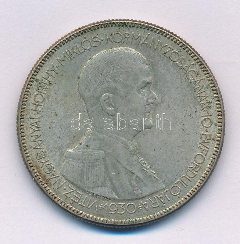 1930. 5P Ag "Horthy jobbra" hajas T:VF, patina