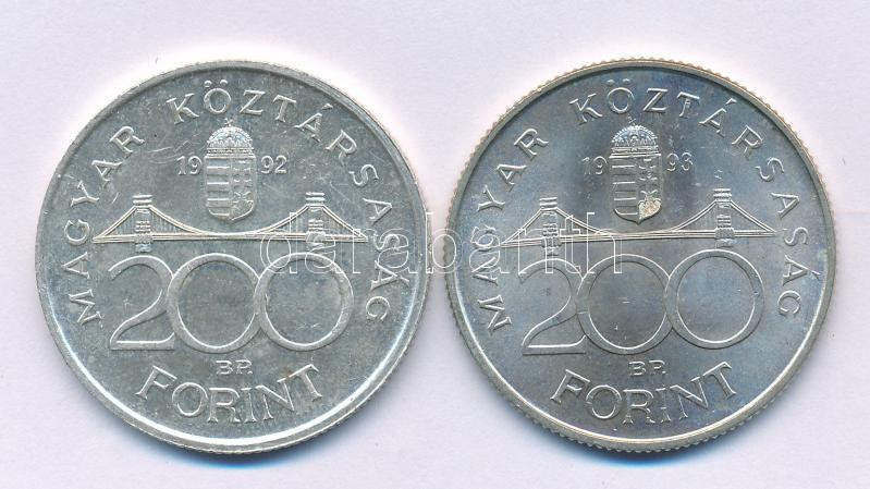 1992. 200Ft Ag "MNB" + 1993. 200Ft Ag "MNB" T:AU,X... https://www.darabanth.com/de/508-Fernauktion/508.0/Numismatik/Ungarische-Munzen-und-Munzen-mit-ungarischem-Munzzeichen~836/1992-200Ft-Ag-3Cem3EMNB3Cem3E-plus-1993-200Ft-Ag-3Cem3EMNB3Cem3E-TAU-XF3Cbr-3E-Adamo-F13~II3443316