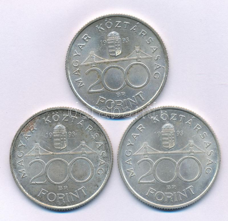 Beschreibung: 1993. 200Ft Ag "MNB " (3x) T:AU, XF patina