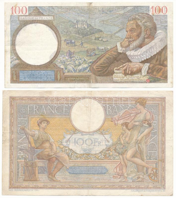 Franciaország 1939. 100Fr "Luc Olivier Merson" + 1940. 100Fr T:F, pici... https://www.darabanth.com/de/508-Fernauktion/508.0/Numismatik/Weltweit-Banknoten~842/Franciaorszag-1939-100Fr-Luc-Olivier-Merson-plus-1940-100Fr-T-F-pici-szakadasFrance-1939-100~II3440056