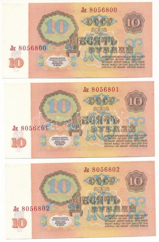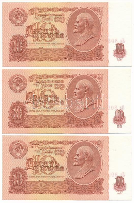 So... https://www.darabanth.com/de/508-Fernauktion/508.0/Numismatik/Weltweit-Banknoten~842/Szovjetunio-1961-10R-3x-sorszamkovetok-8056800-8056802-T-XFSoviet-Union-1961-10-Rubles~II3442798