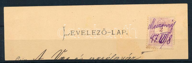 Beschreibung: 1881 2kr levéldarabon kézi Meczenzéf bélyegzéssel / with handwritten postmark