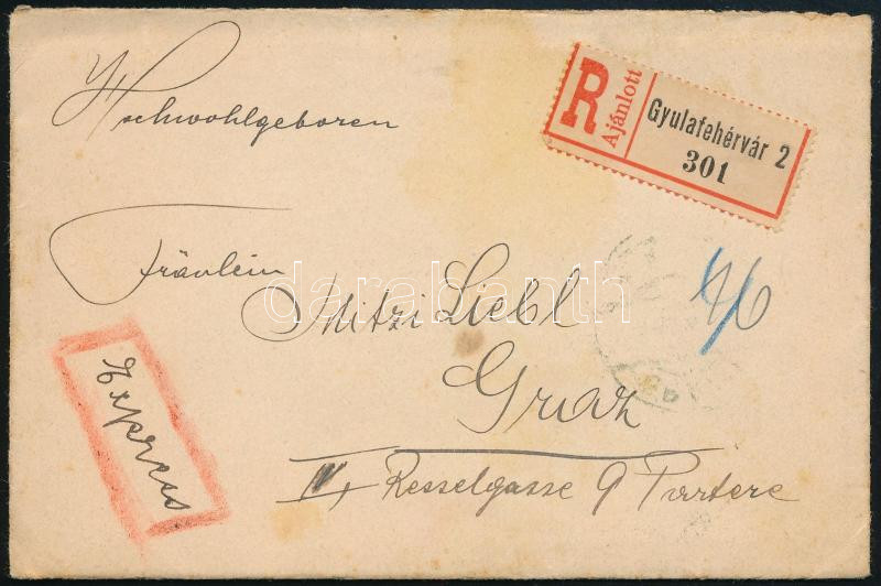 1914 Ajánlott expressz levél Gyulafehérvárról Grazba https://www.darabanth.com/de/508-Fernauktion/508.0/Philatelie-und-Postgeschichte-Ungarn/Ausgaben-1900-1919~34/1914-Ajanlott-expressz-level-Gyulafehervarrol-Grazba~II3440155