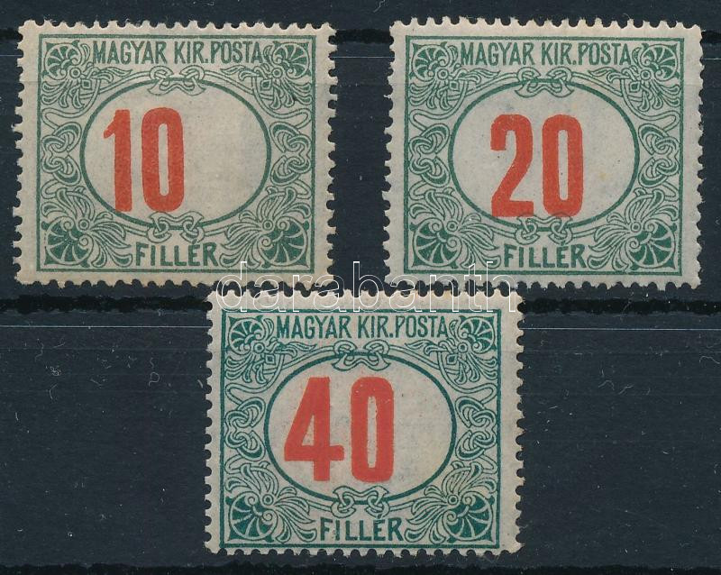 Beschreibung: 1915 Pirosszámú Zöldportó 10f, 20f, 40f eltolódott értékszámokkal