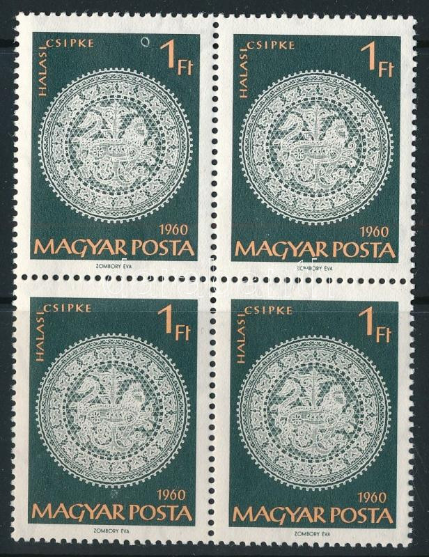 1960 Halasi csipke (I.) 1Ft négyestömb, a bal felső bélyegen nagy polo... https://www.darabanth.com/de/508-Fernauktion/508.0/Philatelie-und-Postgeschichte-Ungarn/Ausgaben-1957-1969~51/1960-Halasi-csipke-I-1Ft-negyestomb-a-bal-felso-belyegen-nagy-poloska~II3442509