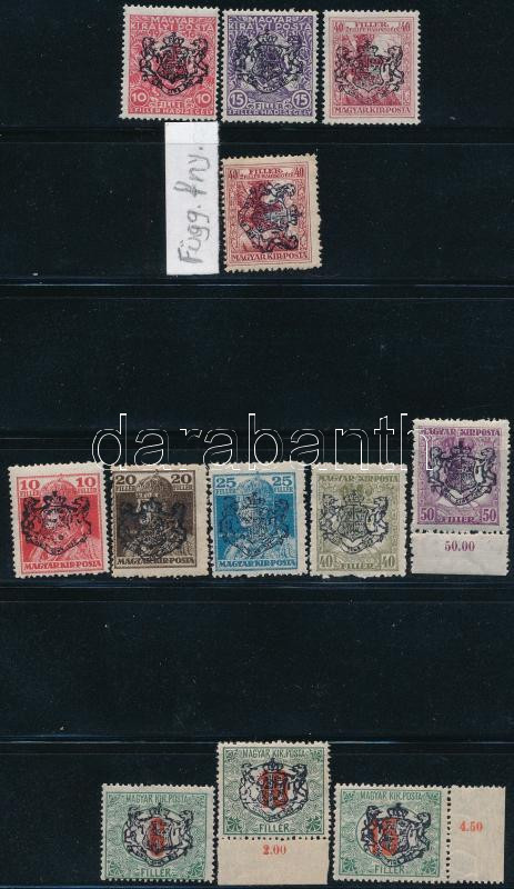 Beschreibung: Nagyszeben 1919 22 db bélyeg, közte 90 fokkal elfordított felülnyomás