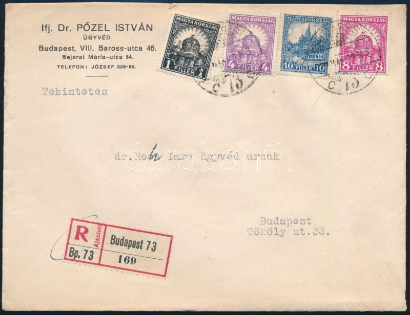 Beschreibung: 1928 4 bélyeges Budapest helyi ajánlott levél