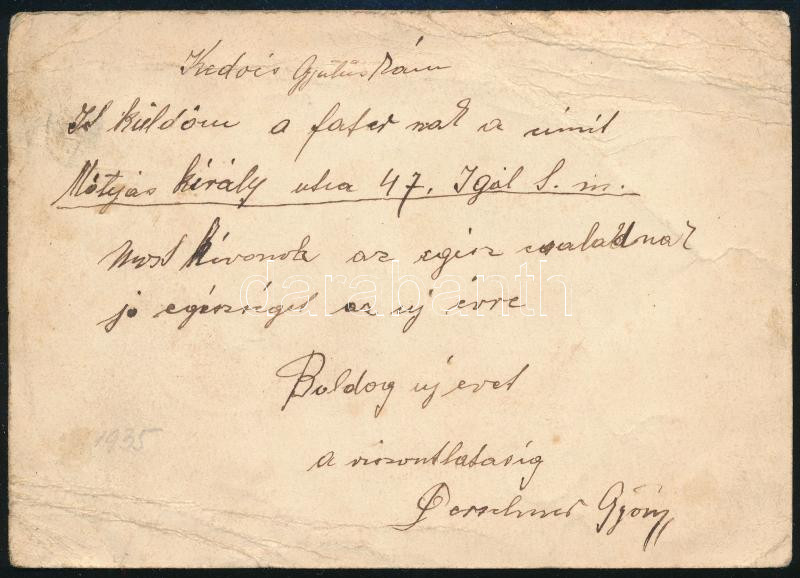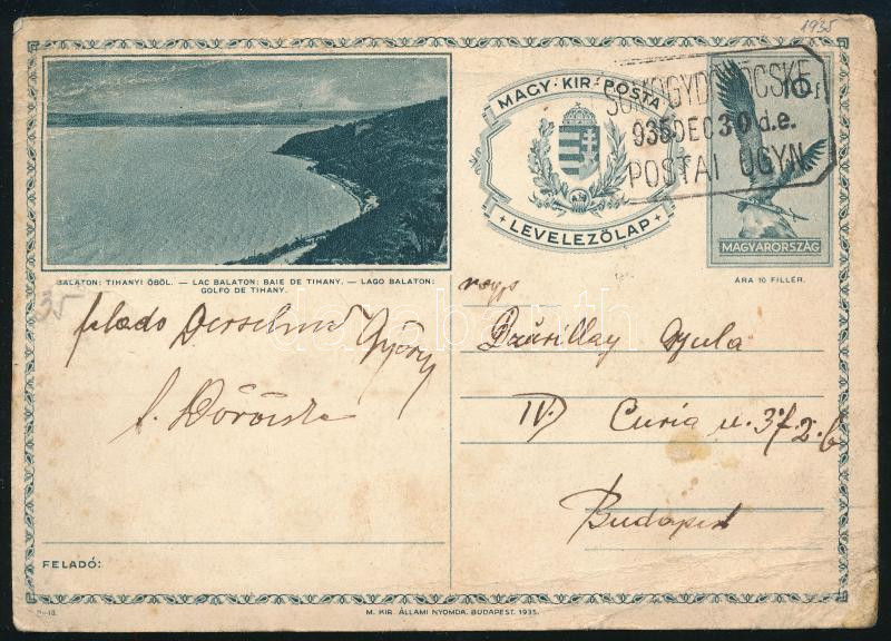 1935 Megviselt állapotú díjjegyes levelezőlap SOMOGYDÖRÖCSKE postaügyn... https://www.darabanth.com/de/508-Fernauktion/508.0/Philatelie-und-Postgeschichte-Ungarn/Pengo-Periode-1926-1944~46/1935-Megviselt-allapotu-dijjegyes-levelezolap-SOMOGYDOROCSKE-postaugynoksegi-belyegzessel~II2872372
