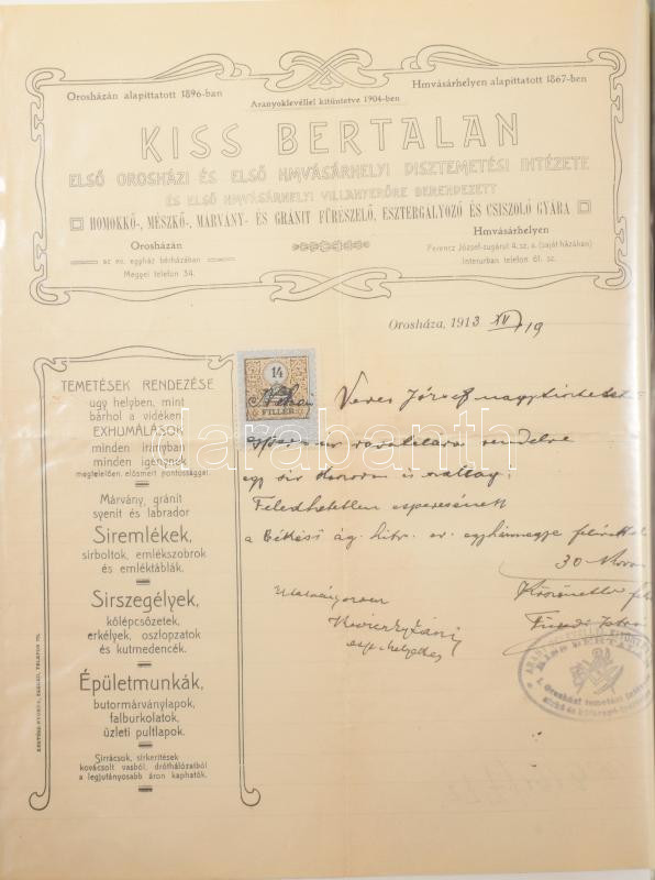 ca 1860-1910 50 db nagyrészt okmánybélyeges irat, váltó, számla, okmán... https://www.darabanth.com/de/508-Fernauktion/508.0/Philatelie-und-Postgeschichte-Ungarn/Stempelmarken~76/ca-1860-1910-50-db-nagyreszt-okmanybelyeges-irat-valto-szamla-okmany-Berakoban~II3443433