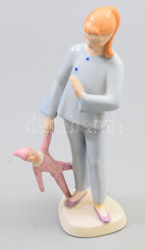 Beschreibung: Drasche babával játszó kislány. Jelzett, kézzel festett, hibátlan, m: 19 cm