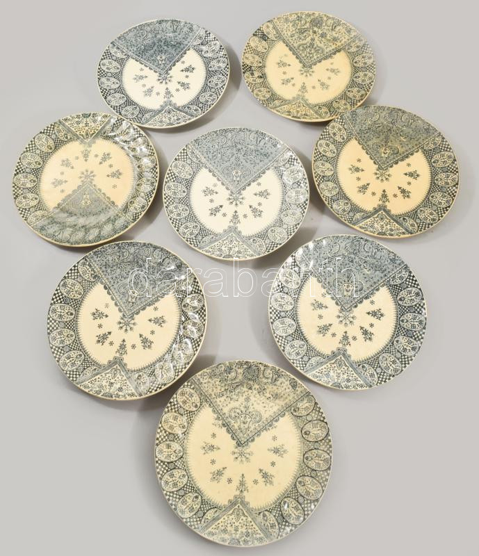 Beschreibung: Fischer Ignác "Emma" mintás 8 darabos tál készlet. Jelzett, pár darabon bebarnult mázzal, erős mázrepedésekkel, egyik darabon lepattanással, d: 20 cm