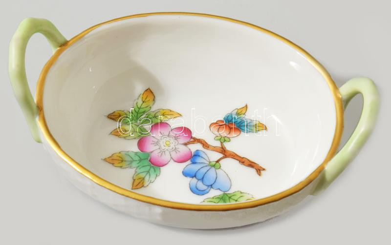 Beschreibung: Herendi virágmintás gyűrűtartó tálka, inda fülekkel, jelzett, hibátlan, 8,5x6 cm