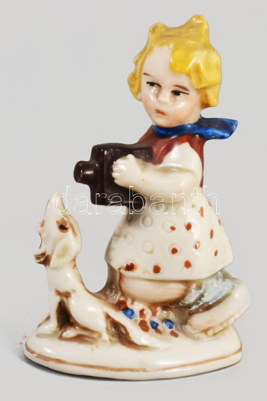 cca 1930 Kamerázó lány kutyával figura, kopással, m: 9 cm https://www.darabanth.com/de/508-Fernauktion/508.0/Porzellan-Keramik-Glass/Porzellan~857/cca-1930-Kamerazo-lany-kutyaval-figura-kopassal-m-9-cm~II3436036