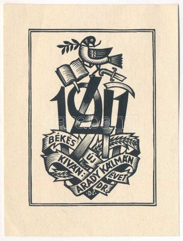 Drahos István (1895-1968): Békés Új Évet Kíván Dr. Arady Kálmán 1941, ... https://www.darabanth.com/de/509-Fernauktion/509.0/Gemalde-und-Grafiken/Ex-libris-Kleingrafik~2/Drahos-Istvan-1895-1968-Bekes-Uj-Evet-Kivan-Dr-Arady-Kalman-1941-klise-papir-jelze~II3411353