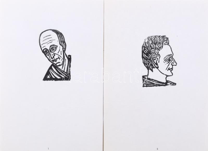 Perei Zoltán (1913-1992): Képes esztétikai kislexikon (92 db híres művészeket, tudósokat ábrázoló arckép). Fametszet, papír. Jelzett és számozott (16/100) az előzéklapon. Kiadói kartontokban. Lapméret: 11x15 cm. Komplett!