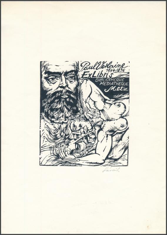 Sárosi Csaba (1951-): Ex libris Paul Verlaine, Bibliotheque Mediathequ... https://www.darabanth.com/de/509-Fernauktion/509.0/Gemalde-und-Grafiken/Ex-libris-Kleingrafik~2/Sarosi-Csaba-1951-Ex-libris-Paul-Verlaine-Bibliotheque-Mediatheque-Metz-Linometszet-hartya~II3444660