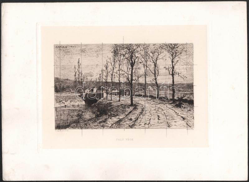 Adolphe Appian (1819-1898): Falu vége. Rézkarc, papír, jelzett a karcon. Az 1884-ben megjelent Életképek. Jelenkori művészek találkozója. Husz rézkarcz c. mappából.