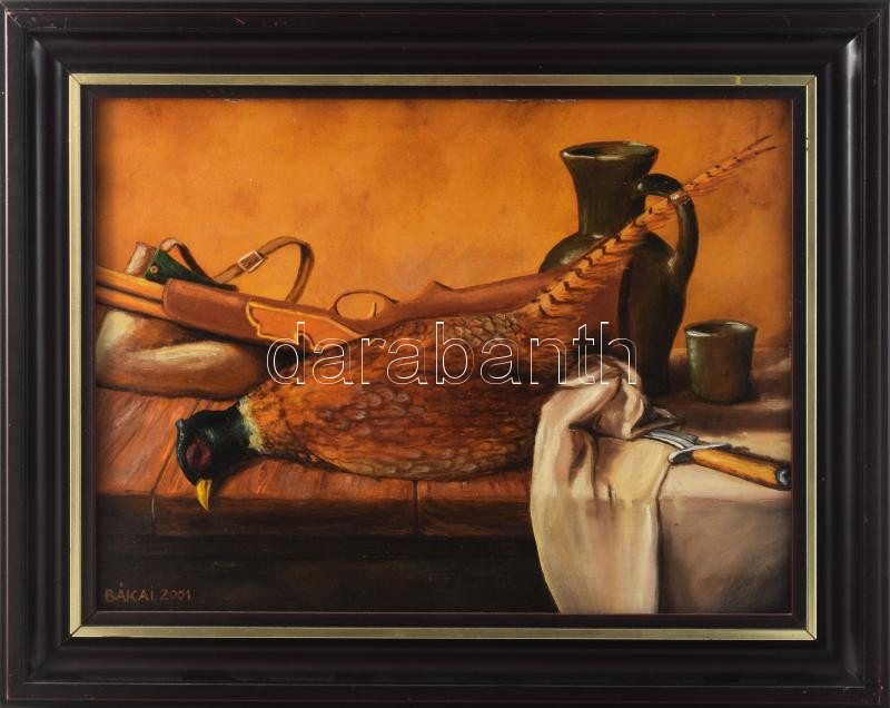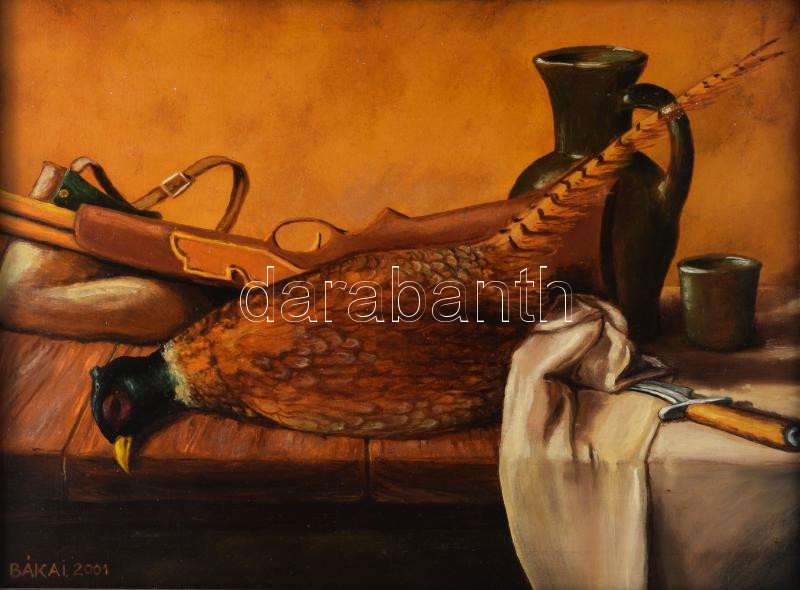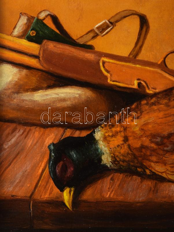Bákai László (-): Vadászcsendélet. Olaj, farost. Jelzett. Fakeretben. ... https://www.darabanth.com/de/509-Fernauktion/509.0/Gemalde-und-Grafiken/Gemalde-und-Grafiken~4/Bakai-Laszlo-Vadaszcsendelet-Olaj-farost-Jelzett-Fakeretben-30C39740-cm~II3431932