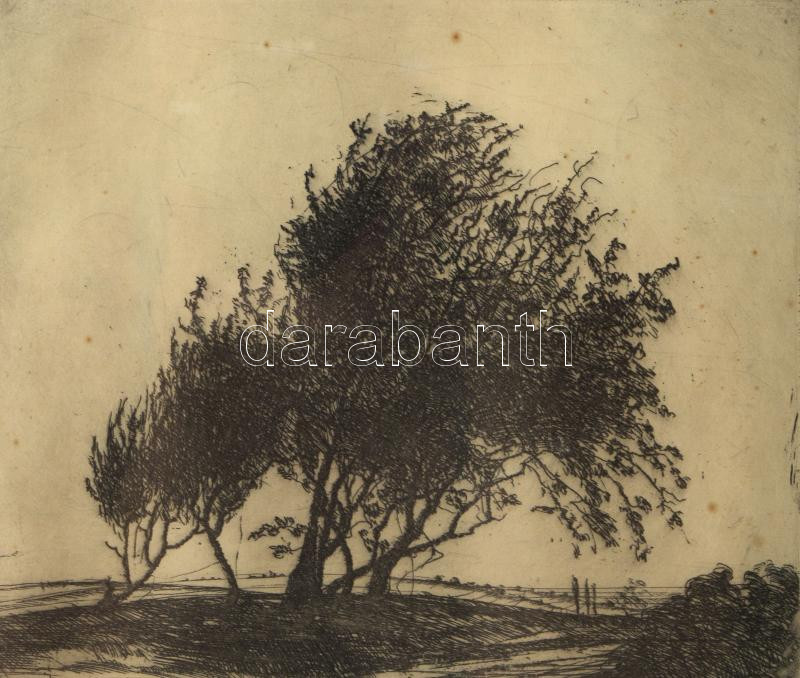 Beschreibung: Barcsay Jenő (1900-1988): Fák. Rézkarc, papír, jelzett. Üvegezett fakeretben. Lapszéli apró foltokkal. 12,5x15 cm
