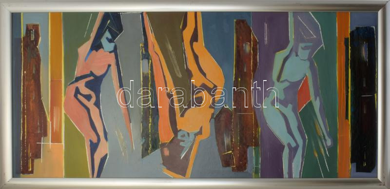 Bubelényi András (-): Delta. Olaj, farost. Jelzett a hátoldalán. Fakeretben. 50x110 cm. KIZÁRÓLAG SZEMÉLYES ÁTVÉTEL, NEM POSTÁZZUK! / ONLY PERSONAL COLLECTION AT OUR OFFICE!