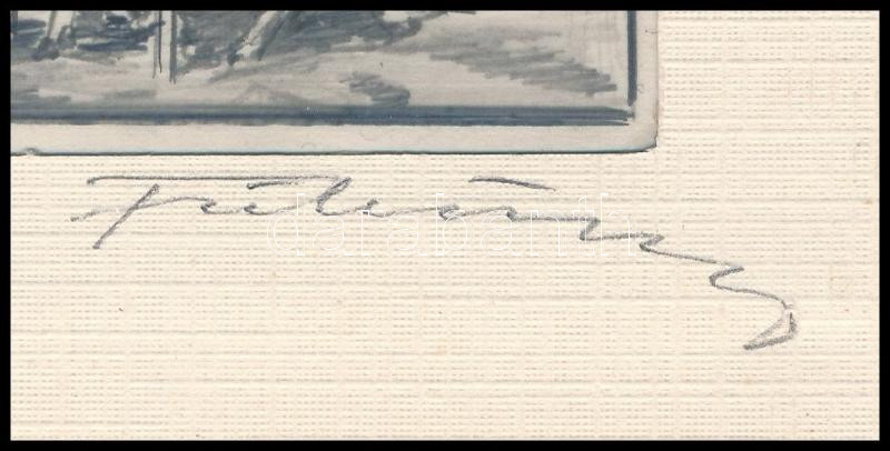 Beschreibung: Füle Mihály (1914-2005): Tehenek (rézkarc terve), 1980. Ceruza, papír. Jelzett. Paszpartuban. 7,5×13 cm