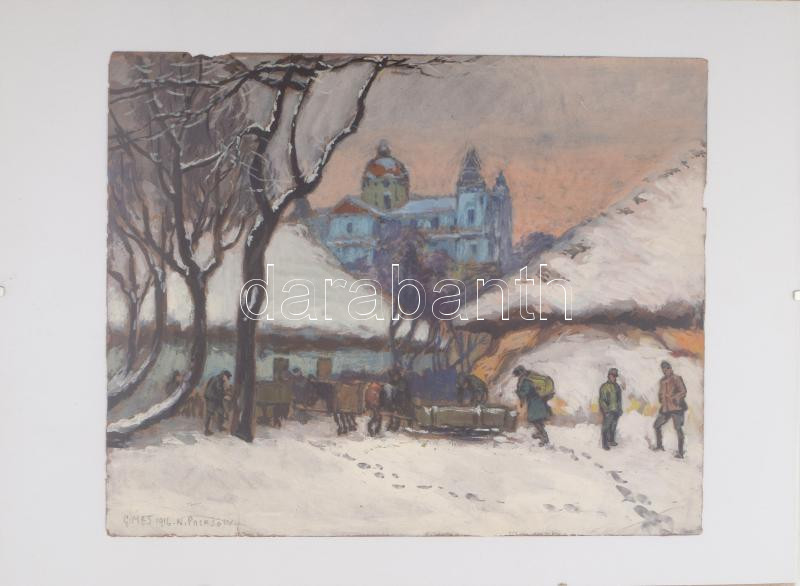 Gimes Lajos (1886-1945): Pocajow - Pochaiv (I. világháborús jelenet). ... https://www.darabanth.com/de/509-Fernauktion/509.0/Gemalde-und-Grafiken/Gemalde-und-Grafiken~4/Gimes-Lajos-1886-1945-Pocajow-Pochaiv-I-vilaghaborus-jelenet-Olaj-karton-jelzett-uve~II3449752
