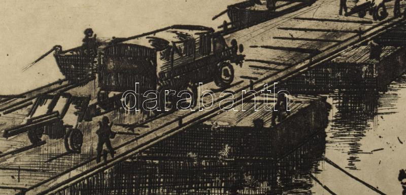 Beschreibung: Gyimesi Lajos (1919-1997): Átkelés. Rézkarc, papír, jelzés nélkül. 19,5×29,5 cm
