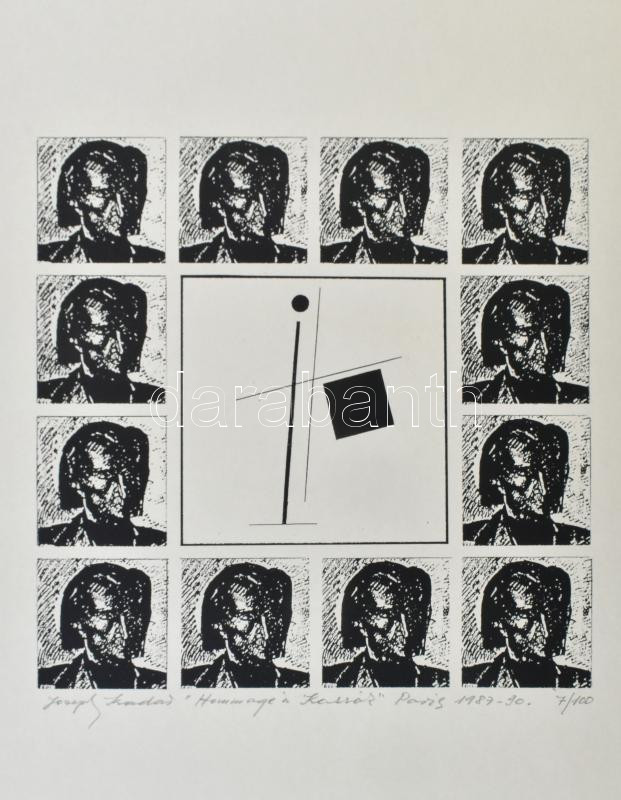 Joseph Kádár (1936-2019): "Hommage á Kassák", 1987-1990. Elektrográfia, papír, jelzett, számozott (7/100). Hátoldalán a művész pecsétjével és autográf felirattal, 23x23 cm