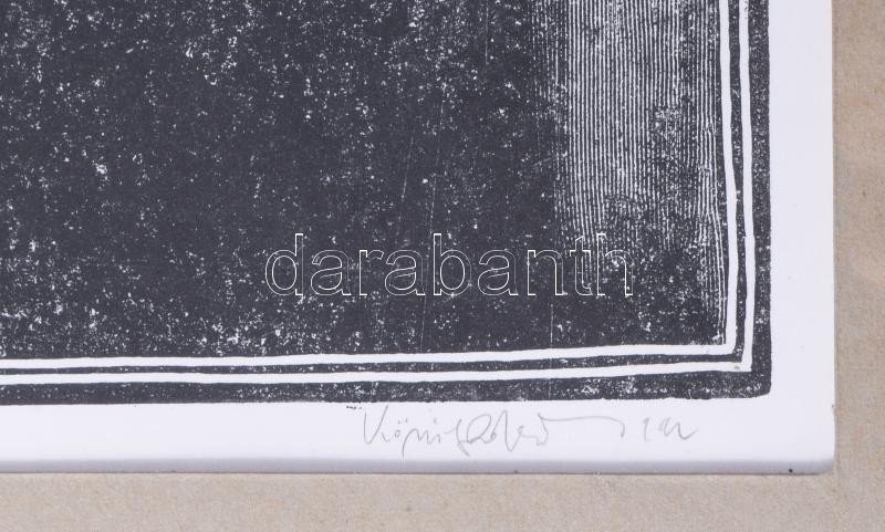 Beschreibung: König (Kőnig) Róbert (1951-2014): Hebridák. Linómetszet, papír, jelzett, művészpéldány EA. III./V. számozással, üvegezett fakeretben, 35x50 cm