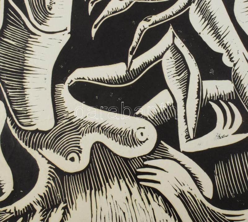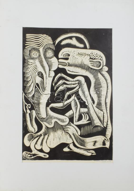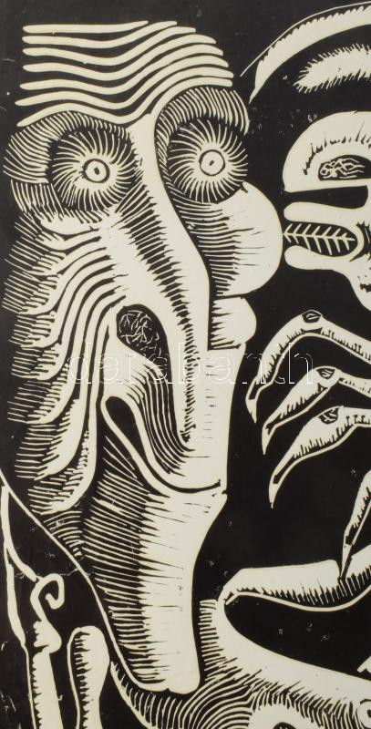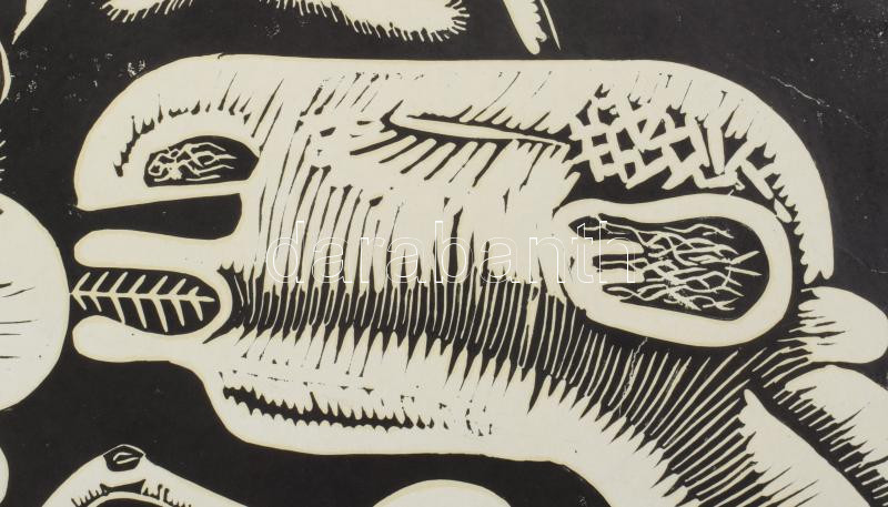 Láta László (1938-): Hüllőcsók, 1980. Linómetszet, papír, jelzett, apr... https://www.darabanth.com/de/509-Fernauktion/509.0/Gemalde-und-Grafiken/Gemalde-und-Grafiken~4/Lata-Laszlo-1938-Hullocsok-1980-Linometszet-papir-jelzett-apro-gyurodessel-pas~II3452646