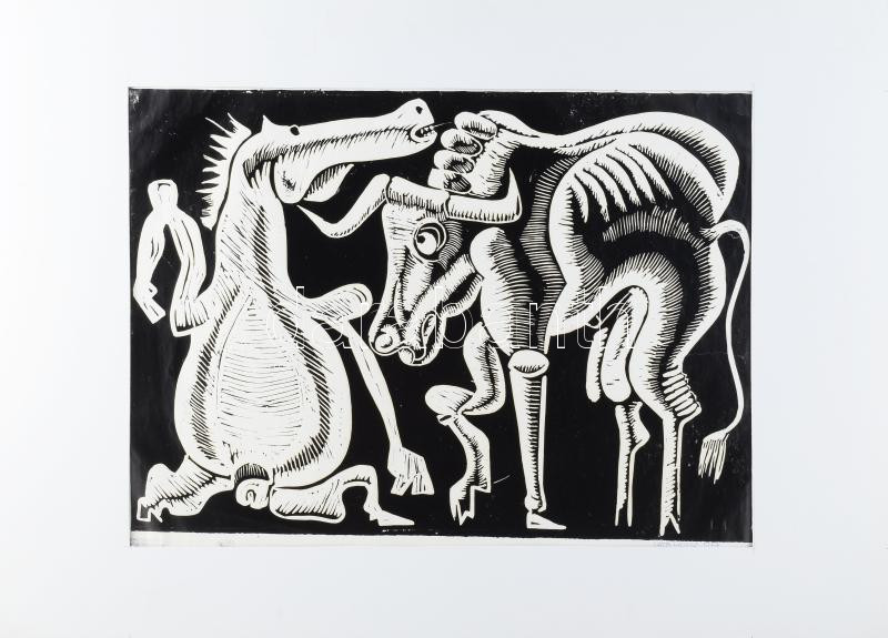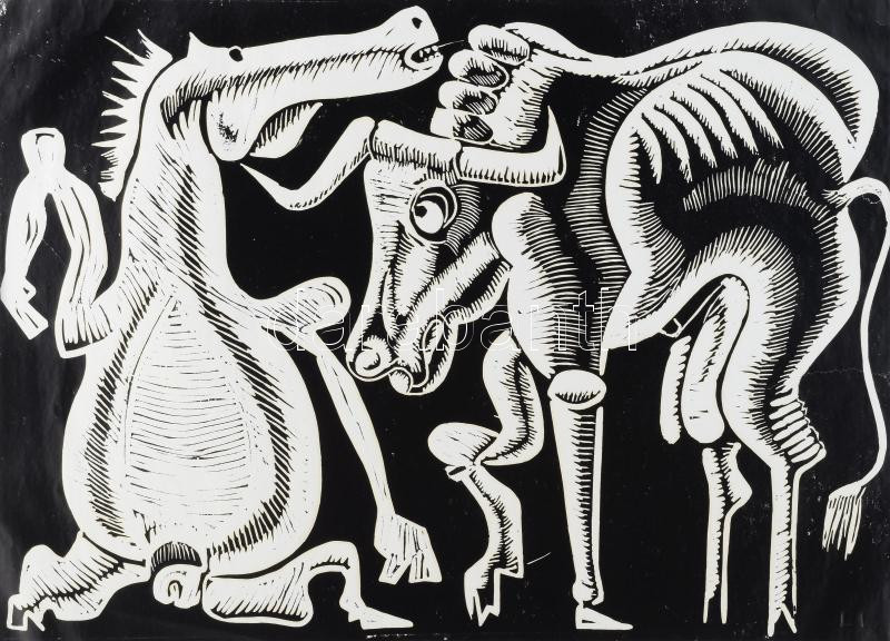 Láta László (1938-): Ló és bika, 1977. Linómetszet, papír, jelzett, pa... https://www.darabanth.com/de/509-Fernauktion/509.0/Gemalde-und-Grafiken/Gemalde-und-Grafiken~4/Lata-Laszlo-1938-Lo-es-bika-1977-Linometszet-papir-jelzett-paszpartuban-34-5x48-cm~II3431910