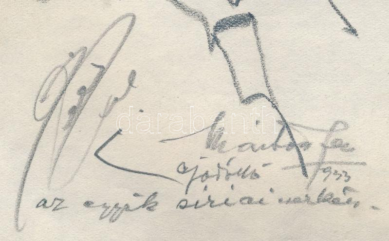 Márton Ferenc (1884-1940): 1933 Gödöllői Jamboree - szíriai cserkészcsapat vezető aláírt rajza. Ceruza, papír, jelzett, / Scout Jamboree 1933. Gödöllő, Syrian scout chief. Pencil drawing with the signature of the depicted. 20x18 cm