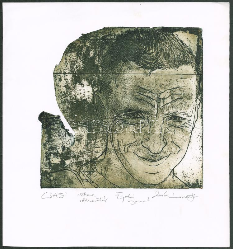 Beschreibung: Németh Róbert (1975-): Csabi, 2006. Rézkarc, rézmaratás, papír, jelzett, egyedi nyomat. 20x20 cm