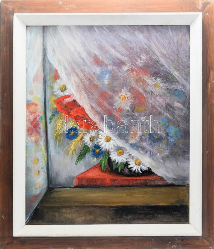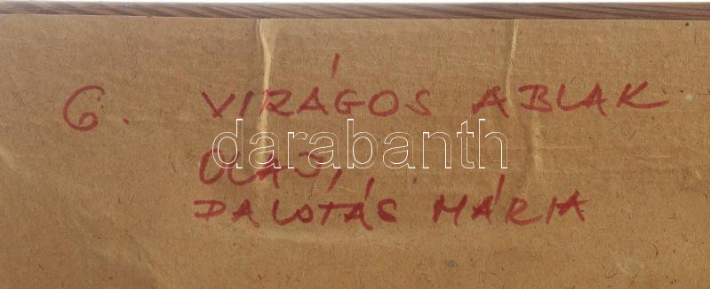 Palotás Mária (-): Virágos ablak. Olaj, vászon. Jelzett a hátoldalán. ... https://www.darabanth.com/de/509-Fernauktion/509.0/Gemalde-und-Grafiken/Gemalde-und-Grafiken~4/Palotas-Maria-Viragos-ablak-Olaj-vaszon-Jelzett-a-hatoldalan-Fakeretben-60x50-cm~II3412556