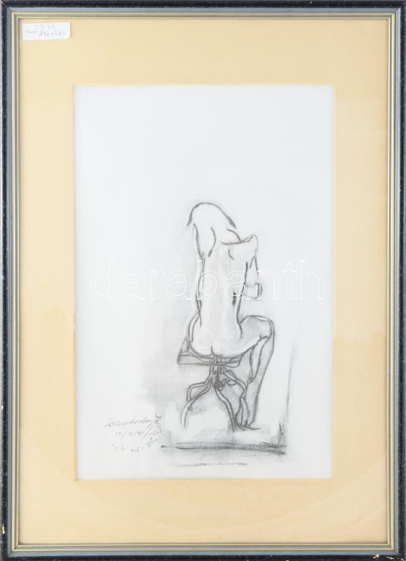 Rubint Ávrahám Péter (1958-): Ülő nő (akt), 1998. Ceruza, papír, jelze... https://www.darabanth.com/de/509-Fernauktion/509.0/Gemalde-und-Grafiken/Gemalde-und-Grafiken~4/Rubint-Avraham-Peter-1958-Ulo-no-akt-1998-Ceruza-papir-jelzett-Uvegezett-fakeretb~II3433317