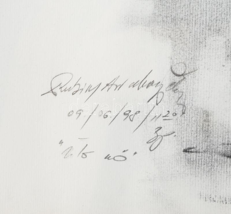 Beschreibung: Rubint Ávrahám Péter (1958-): Ülő nő (akt), 1998. Ceruza, papír, jelzett. Üvegezett fakeretben, 41×27 cm.