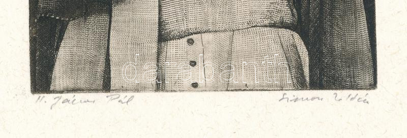 Beschreibung: Simon Zoltán (1950-): II. János Pál. Rézkarc, papír, jelzett. 18x11,5 cm