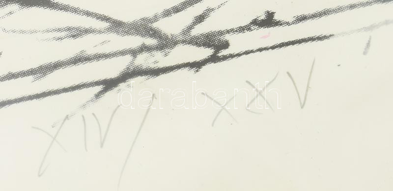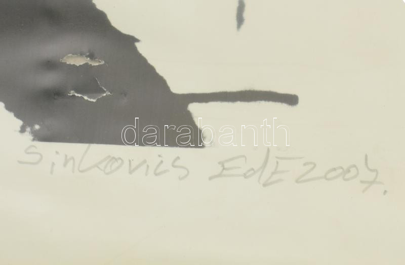 Beschreibung: Sinkovics Ede (1971-): "Sárga a parlagon". Szitanyomat, vegyes technika, papír, jelzett, számozott (XIV/XXV), kissé sérült, 64×91 cm
