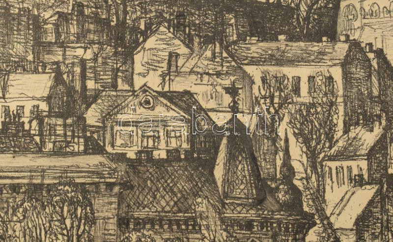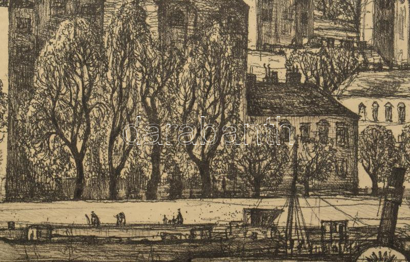 Beschreibung: Szabó Vladimír (1905-1991): Pestről a Vár. Rézkarc, papír, jelzett. Kartonra kasírozva. 29x39 cm