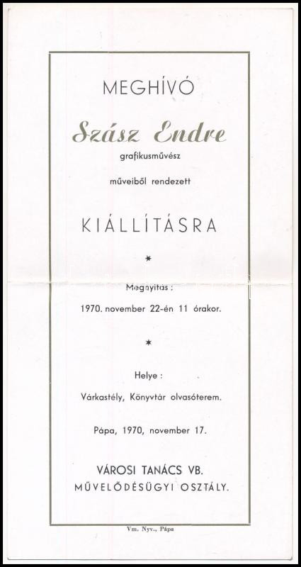 Szász Endre (1926-2003): Női portré. Golyóstoll, papír. Jelezve jobbra lent. Szász Endre 1970-ben Pápán rendezett kiállítási meghívójának hátoldalán. 11×10,5 cm.