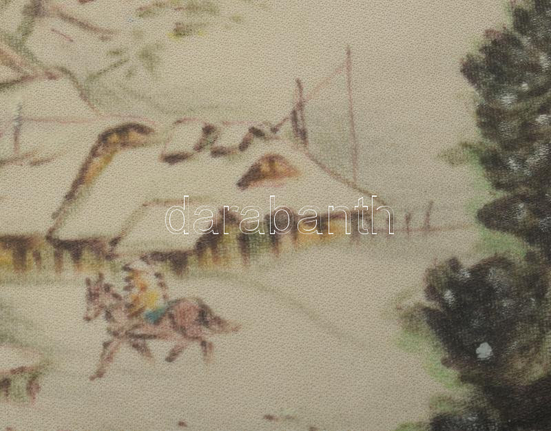Beschreibung: Váli Éva (XX. sz. második fele): Táj lovassal. Pasztell, vászon, jelzett. Üvegezett fakeretben. 40x24,5 cm