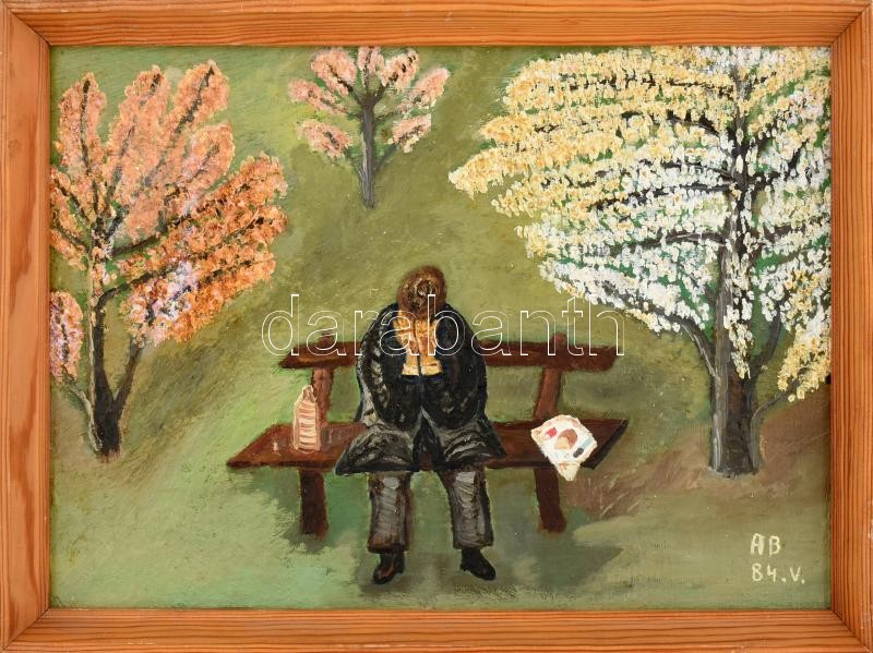 AB 84. V. jelzéssel: Kinn, padon. Olaj, fa. Fa keretben. 25x35 cm https://www.darabanth.com/de/509-Fernauktion/509.0/Gemalde-und-Grafiken/Gemalde-und-Graphic-quot-signiertquot-quot-ohne-Signquot-~1/AB-84-V-jelzessel-Kinn-padon-Olaj-fa-Fa-keretben-25x35-cm~II2320037