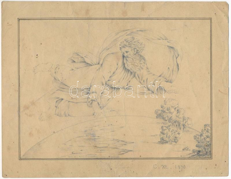 C. M. jelzéssel: Bibliai jelenet, 1870. Ceruza, papír. Lapszéli apró szakadásokkal. Hajtásnyomokkal. 18×23,5 cm.
