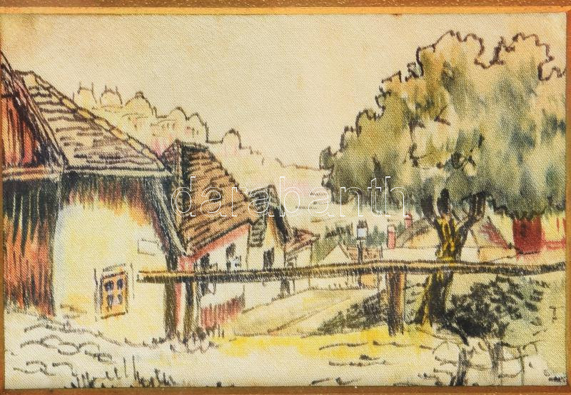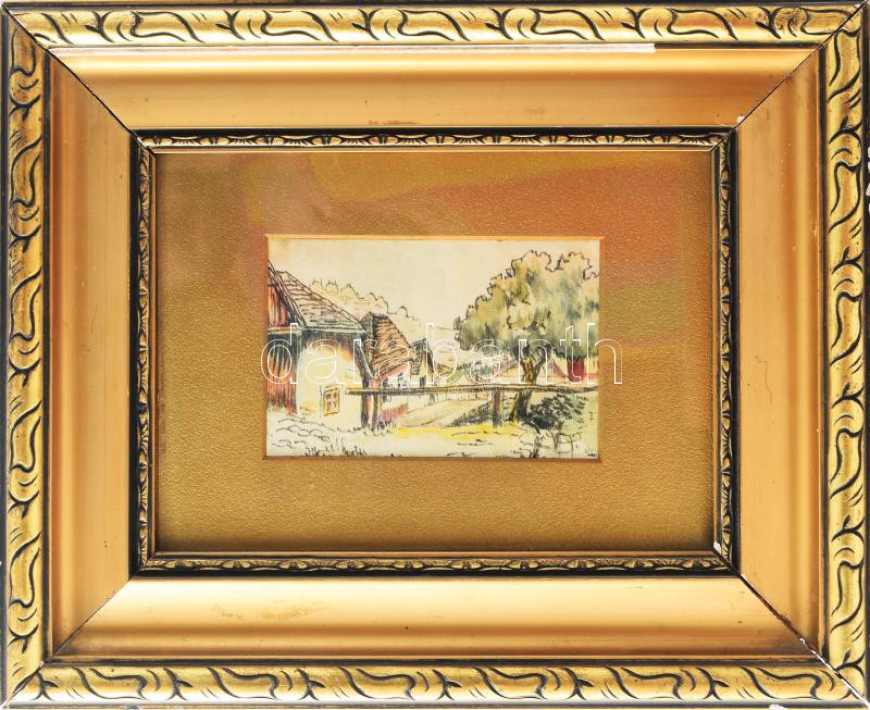 Beschreibung: Jelzés nélkül: Budapest, régi Tabán, Hullám utca. Vegyes technika, vászon. Dekoratív, üvegezett, kissé sérült fakeretben 9x14 cm